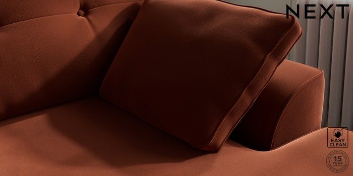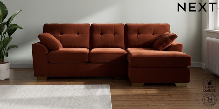 7.2.10 Stamford Buttoned Back Medium Sofa Chaise - Right Hand Plush Velvet Easy Clean Ginger Orange Large Square Angle - Brushed Brass | Made Click here to use our website with more accessibility support, for example screen readers