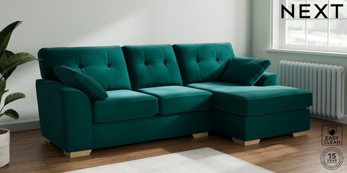 7.2.10 Stamford Buttoned Back Medium Sofa Chaise - Right Hand Plush Velvet Easy Clean Juniper Green Large Square Angle - Light | Made Click here to use our website with more accessibility support, for example screen readers