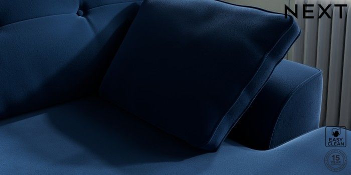 7.2.10 Stamford Buttoned Back Medium Sofa Chaise - Right Hand Plush Velvet Easy Clean Navy Blue Large Square Angle - Brushed Brass | Made Click here to use our website with more accessibility support, for example screen readers
