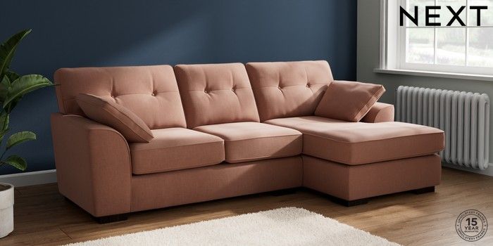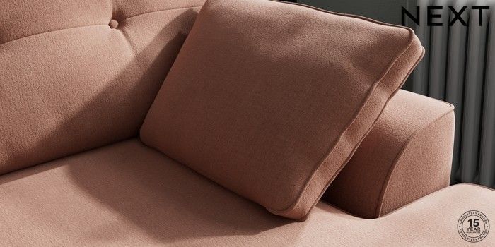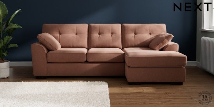 7.2.10 Stamford Buttoned Back Medium Sofa Chaise - Right Hand Relaxed Linen Look Light Rust Brown Large Square Angle - Dark | Made Click here to use our website with more accessibility support, for example screen readers