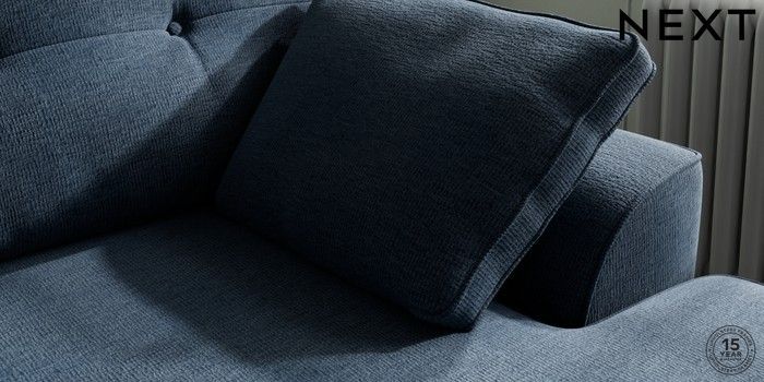 7.2.10 Stamford Buttoned Back Medium Sofa Chaise - Right Hand Ripple Chenille Dark Blue Large Square Angle - Chrome Metal | Made Click here to use our website with more accessibility support, for example screen readers
