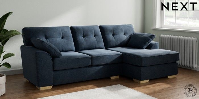 7.2.10 Stamford Buttoned Back Medium Sofa Chaise - Right Hand Ripple Chenille Dark Blue Large Square Angle - Light | Made Click here to use our website with more accessibility support, for example screen readers