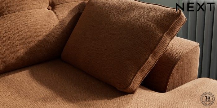 7.2.10 Stamford Buttoned Back Medium Sofa Chaise - Right Hand Ripple Chenille Mid Rust Brown Large Square Angle - Chrome Metal | Made Click here to use our website with more accessibility support, for example screen readers
