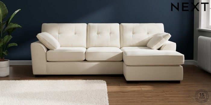 7.2.10 Stamford Buttoned Back Medium Sofa Chaise - Right Hand Ripple Chenille Oyster Large Square Angle - Dark | Made Click here to use our website with more accessibility support, for example screen readers