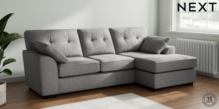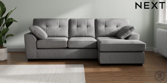 7.2.10 Stamford Buttoned Back Medium Sofa Chaise - Right Hand Studio Chenille Mid Grey Large Square Angle - Dark | Made Click here to use our website with more accessibility support, for example screen readers