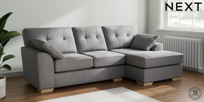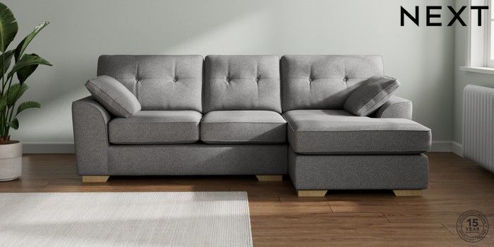 7.2.10 Stamford Buttoned Back Medium Sofa Chaise - Right Hand Studio Chenille Mid Grey Large Square Angle - Light | Made Click here to use our website with more accessibility support, for example screen readers