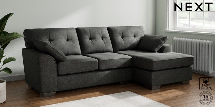 7.2.10 Stamford Buttoned Back Medium Sofa Chaise - Right Hand Tweedy Blend Easy Clean Charcoal Grey Large Square Angle - Gunmetal | Made Click here to use our website with more accessibility support, for example screen readers