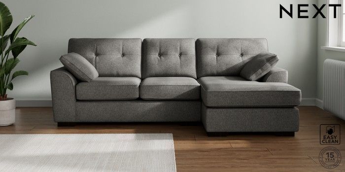 7.2.10 Stamford Buttoned Back Medium Sofa Chaise - Right Hand Tweedy Blend Easy Clean Dark Grey Large Square Angle - Dark | Made Click here to use our website with more accessibility support, for example screen readers
