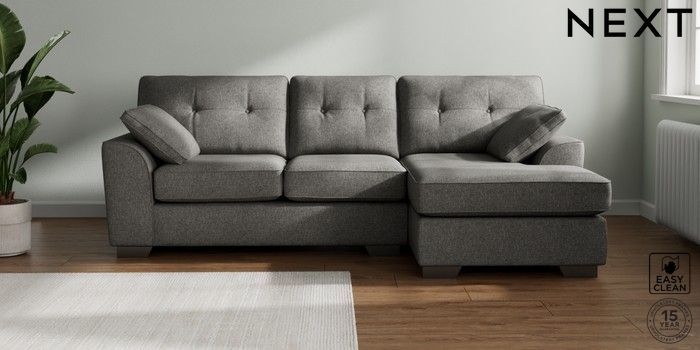 7.2.10 Stamford Buttoned Back Medium Sofa Chaise - Right Hand Tweedy Blend Easy Clean Dark Grey Large Square Angle - Gunmetal | Made Click here to use our website with more accessibility support, for example screen readers