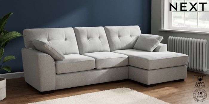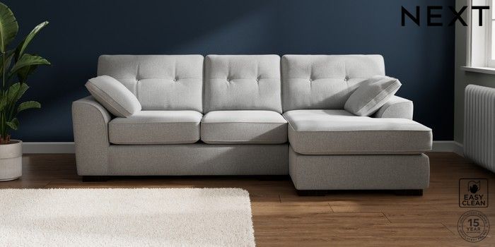 7.2.10 Stamford Buttoned Back Medium Sofa Chaise - Right Hand Tweedy Blend Easy Clean Light Silver Grey Large Square Angle - Dark | Made Click here to use our website with more accessibility support, for example screen readers