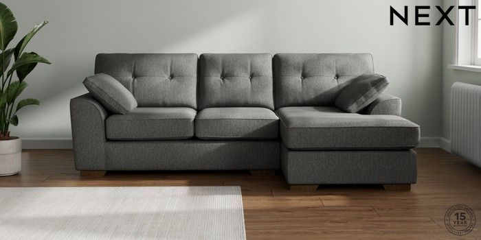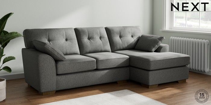 7.2.10 Stamford Buttoned Back Medium Sofa Chaise - Right Hand Tweedy Chenille Dark Grey Large Square Angle - Mid | Made Click here to use our website with more accessibility support, for example screen readers