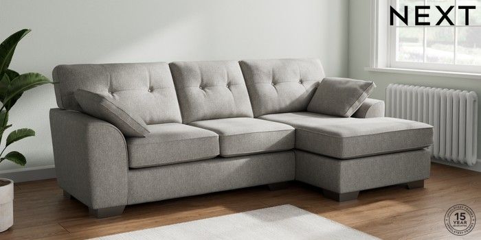 7.2.10 Stamford Buttoned Back Medium Sofa Chaise - Right Hand Tweedy Chenille Mid Grey Large Square Angle - Gunmetal | Made Click here to use our website with more accessibility support, for example screen readers