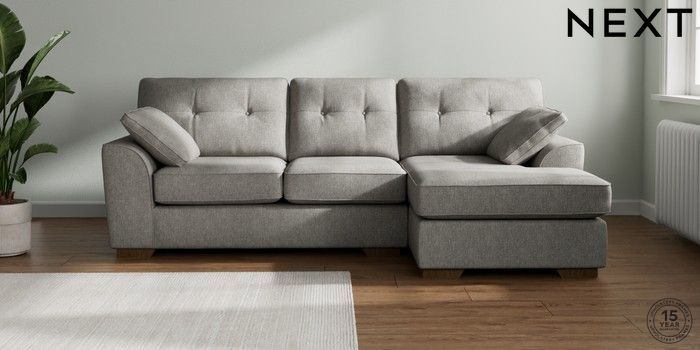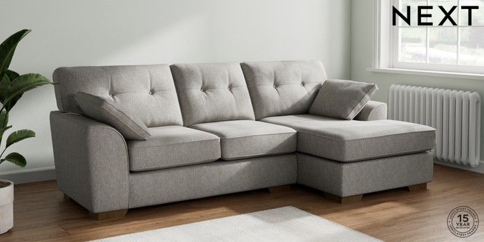 7.2.10 Stamford Buttoned Back Medium Sofa Chaise - Right Hand Tweedy Chenille Mid Grey Large Square Angle - Mid | Made Click here to use our website with more accessibility support, for example screen readers