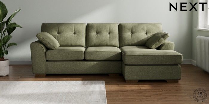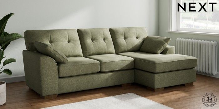 7.2.10 Stamford Buttoned Back Medium Sofa Chaise - Right Hand Tweedy Chenille Mid Moss Green Large Square Angle - Mid | Made Click here to use our website with more accessibility support, for example screen readers