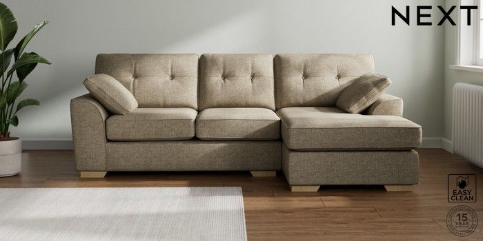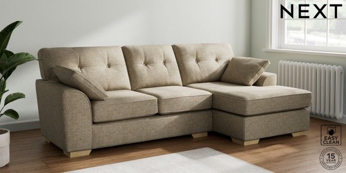 7.2.10 Stamford Buttoned Back Medium Sofa Chaise - Right Hand Woven Chenille Easy Clean Mid Natural Large Square Angle - Light | Made Click here to use our website with more accessibility support, for example screen readers