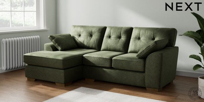 7.2.10 Stamford Buttoned Back Small Sofa Chaise - Left Hand Boucle Chenille Dark Moss Green Large Square Angle - Mid | Made Click here to use our website with more accessibility support, for example screen readers