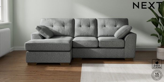 7.2.10 Stamford Buttoned Back Small Sofa Chaise - Left Hand Chunky Boucle Easy Clean Mid Grey Large Square Angle - Mid | Made Click here to use our website with more accessibility support, for example screen readers