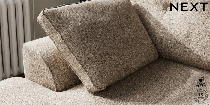 7.2.10 Stamford Buttoned Back Small Sofa Chaise - Left Hand Chunky Boucle Easy Clean Mid Natural Large Square Angle - Brushed Brass | Made Click here to use our website with more accessibility support, for example screen readers