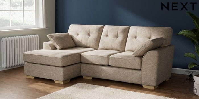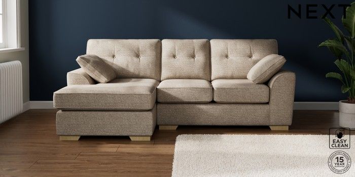 7.2.10 Stamford Buttoned Back Small Sofa Chaise - Left Hand Chunky Boucle Easy Clean Mid Natural Large Square Angle - Light | Made Click here to use our website with more accessibility support, for example screen readers