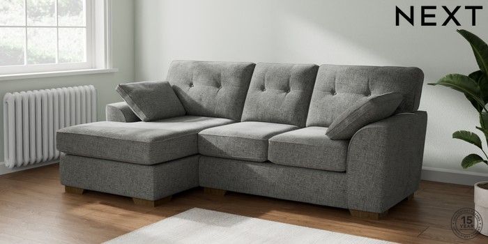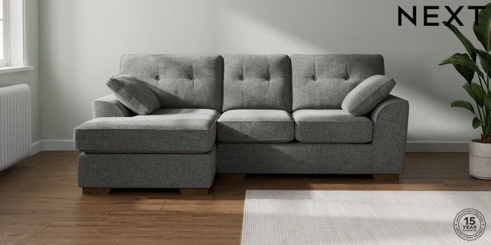 7.2.10 Stamford Buttoned Back Small Sofa Chaise - Left Hand Chunky Chenille Dark Grey Large Square Angle - Mid | Made Click here to use our website with more accessibility support, for example screen readers