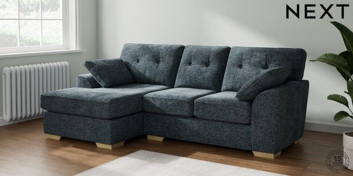 7.2.10 Stamford Buttoned Back Small Sofa Chaise - Left Hand Chunky Chenille Dark Navy Blue Large Square Angle - Light | Made Click here to use our website with more accessibility support, for example screen readers