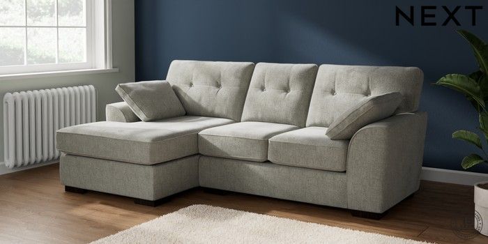7.2.10 Stamford Buttoned Back Small Sofa Chaise - Left Hand Chunky Chenille Light Grey Large Square Angle - Dark | Made Click here to use our website with more accessibility support, for example screen readers