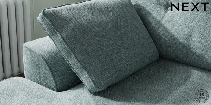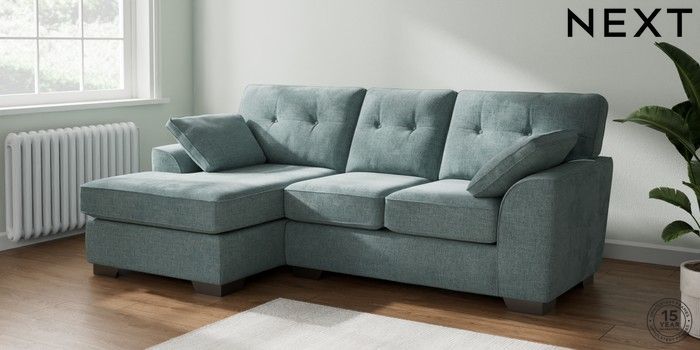 7.2.10 Stamford Buttoned Back Small Sofa Chaise - Left Hand Chunky Chenille Light Teal Green Large Square Angle - Gunmetal | Made Click here to use our website with more accessibility support, for example screen readers