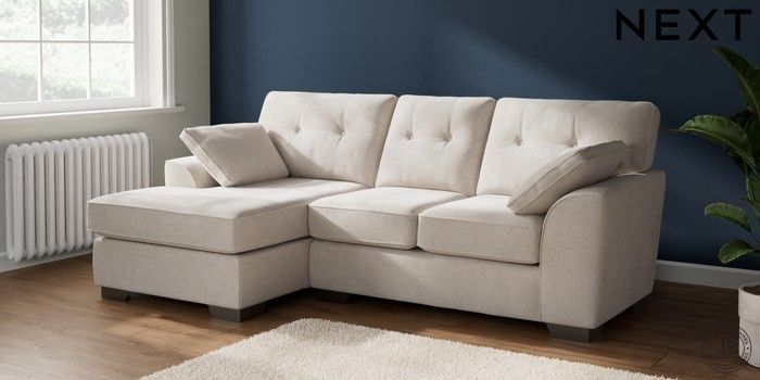 7.2.10 Stamford Buttoned Back Small Sofa Chaise - Left Hand Chunky Chenille Oyster Large Square Angle - Gunmetal | Made Click here to use our website with more accessibility support, for example screen readers