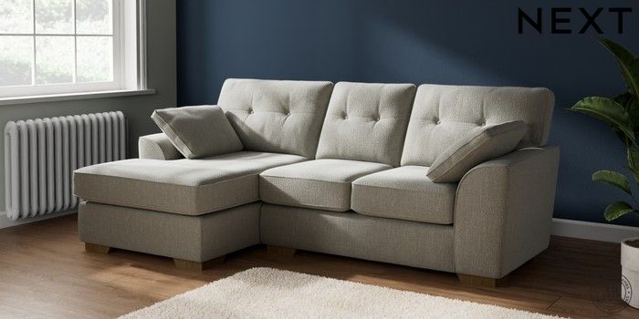 7.2.10 Stamford Buttoned Back Small Sofa Chaise - Left Hand Chunky Texture Dove Large Square Angle - Mid | Made Click here to use our website with more accessibility support, for example screen readers