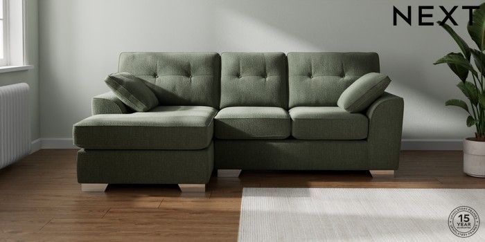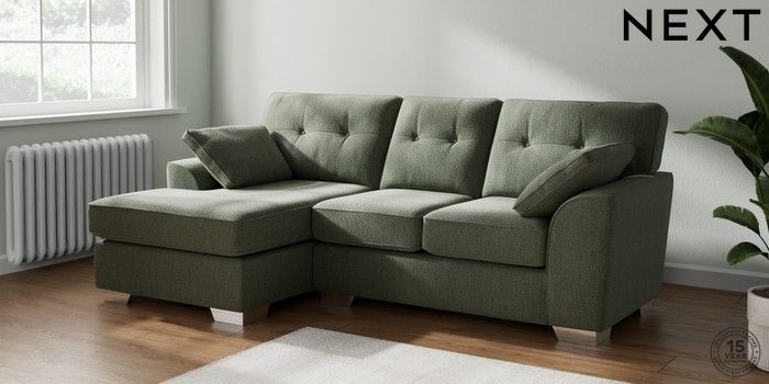 7.2.10 Stamford Buttoned Back Small Sofa Chaise - Left Hand Chunky Texture Mid Forest Green Large Square Angle - Chrome Metal | Made Click here to use our website with more accessibility support, for example screen readers