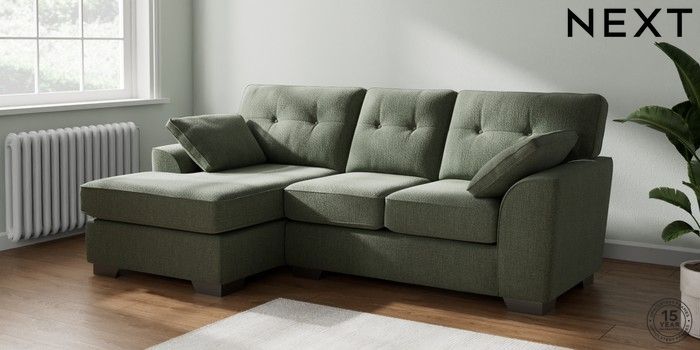 7.2.10 Stamford Buttoned Back Small Sofa Chaise - Left Hand Chunky Texture Mid Forest Green Large Square Angle - Gunmetal | Made Click here to use our website with more accessibility support, for example screen readers