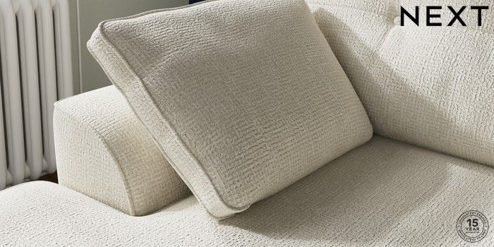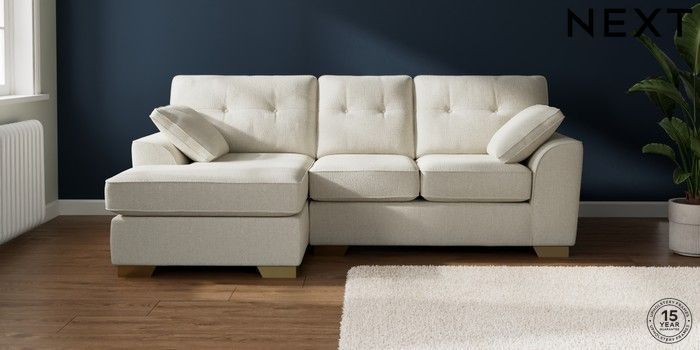 7.2.10 Stamford Buttoned Back Small Sofa Chaise - Left Hand Chunky Texture Oyster Large Square Angle - Brushed Brass | Made Click here to use our website with more accessibility support, for example screen readers