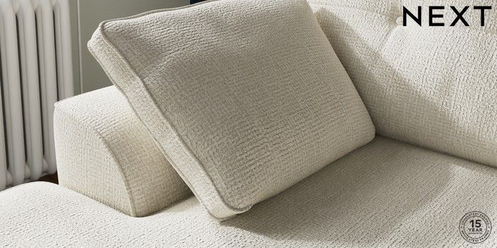7.2.10 Stamford Buttoned Back Small Sofa Chaise - Left Hand Chunky Texture Oyster Large Square Angle - Chrome Metal | Made Click here to use our website with more accessibility support, for example screen readers