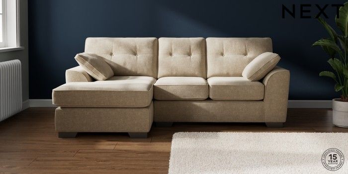 7.2.10 Stamford Buttoned Back Small Sofa Chaise - Left Hand Chunky Weave Cream Large Square Angle - Gunmetal | Made Click here to use our website with more accessibility support, for example screen readers