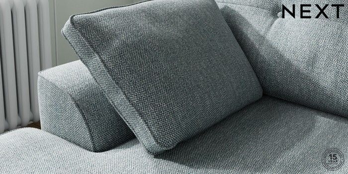 7.2.10 Stamford Buttoned Back Small Sofa Chaise - Left Hand Chunky Weave Mid Blue Large Square Angle - Brushed Brass | Made Click here to use our website with more accessibility support, for example screen readers