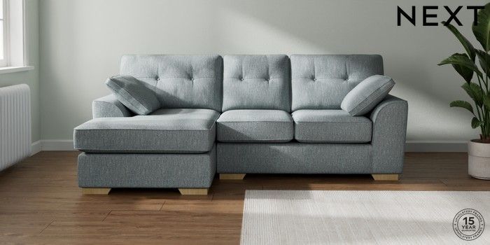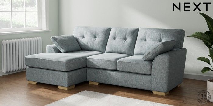 7.2.10 Stamford Buttoned Back Small Sofa Chaise - Left Hand Chunky Weave Mid Blue Large Square Angle - Light | Made Click here to use our website with more accessibility support, for example screen readers