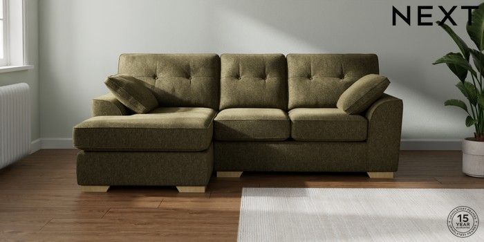 7.2.10 Stamford Buttoned Back Small Sofa Chaise - Left Hand Cotswold Chenille Dark Green Large Square Angle - Light | Made Click here to use our website with more accessibility support, for example screen readers