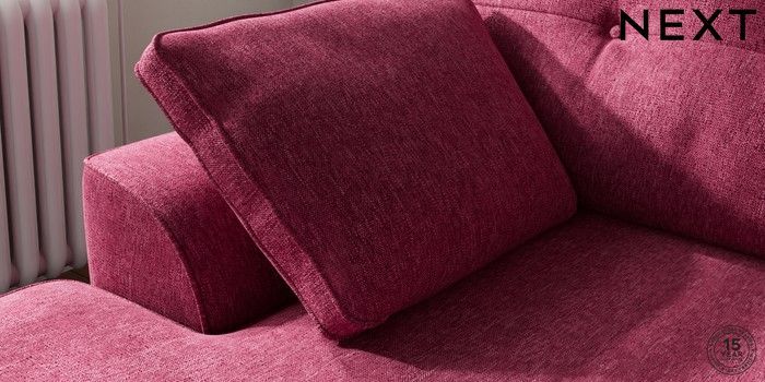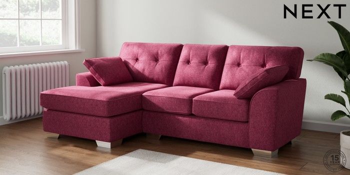 7.2.10 Stamford Buttoned Back Small Sofa Chaise - Left Hand Cotswold Chenille Dark Raspberry Pink Large Square Angle - Chrome Metal | Made Click here to use our website with more accessibility support, for example screen readers