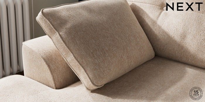 7.2.10 Stamford Buttoned Back Small Sofa Chaise - Left Hand Cotswold Chenille Light Natural Large Square Angle - Brushed Brass | Made Click here to use our website with more accessibility support, for example screen readers