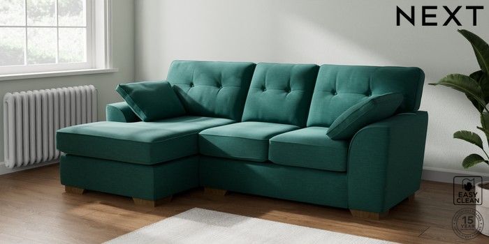 7.2.10 Stamford Buttoned Back Small Sofa Chaise - Left Hand Fine Chenille Easy Clean Dark Juniper Green Large Square Angle - Mid | Made Click here to use our website with more accessibility support, for example screen readers