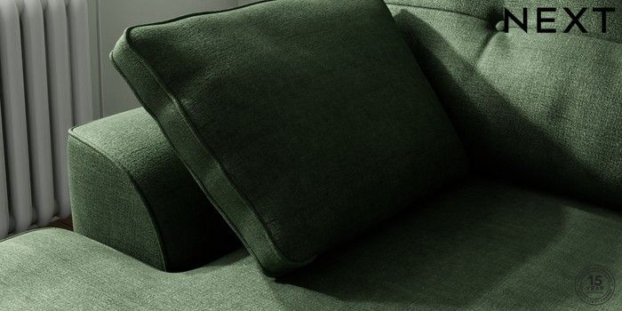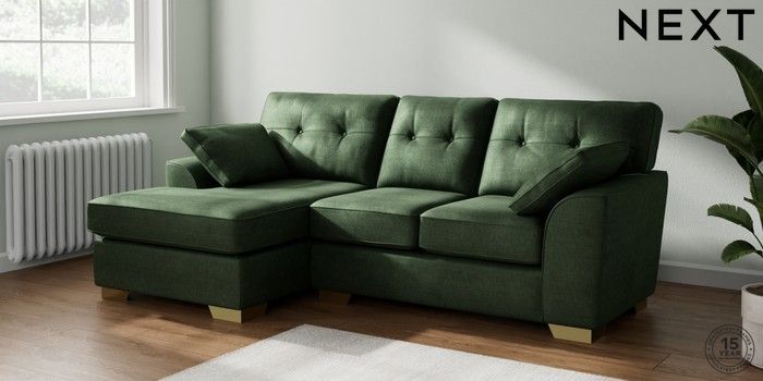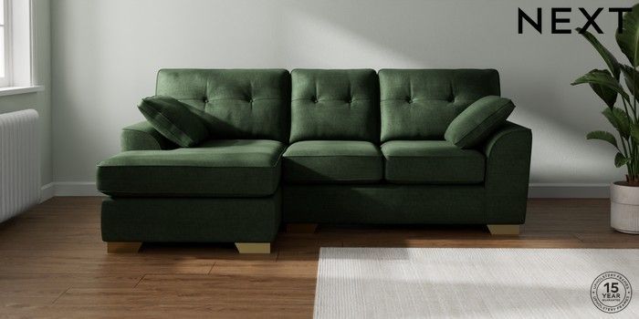 7.2.10 Stamford Buttoned Back Small Sofa Chaise - Left Hand Luxe Chenille Dark Green Large Square Angle - Brushed Brass | Made Click here to use our website with more accessibility support, for example screen readers