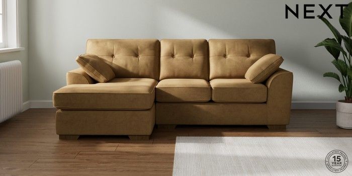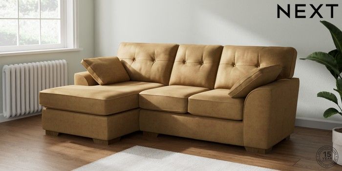 7.2.10 Stamford Buttoned Back Small Sofa Chaise - Left Hand Luxe Chenille Honey Yellow Large Square Angle - Mid | Made Click here to use our website with more accessibility support, for example screen readers