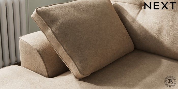 7.2.10 Stamford Buttoned Back Small Sofa Chaise - Left Hand Luxe Chenille Mid Camel Beige Large Square Angle - Brushed Brass | Made Click here to use our website with more accessibility support, for example screen readers