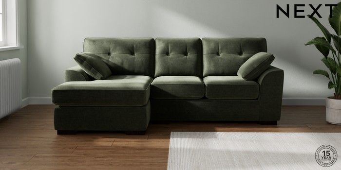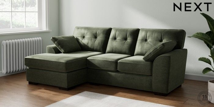 7.2.10 Stamford Buttoned Back Small Sofa Chaise - Left Hand Luxe Chenille Mid Green Large Square Angle - Dark | Made Click here to use our website with more accessibility support, for example screen readers