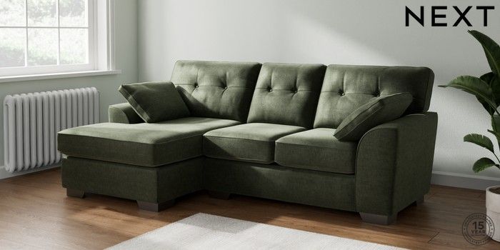 7.2.10 Stamford Buttoned Back Small Sofa Chaise - Left Hand Luxe Chenille Mid Green Large Square Angle - Gunmetal | Made Click here to use our website with more accessibility support, for example screen readers