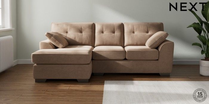 7.2.10 Stamford Buttoned Back Small Sofa Chaise - Left Hand Luxe Chenille Mid Natural Large Square Angle - Gunmetal | Made Click here to use our website with more accessibility support, for example screen readers