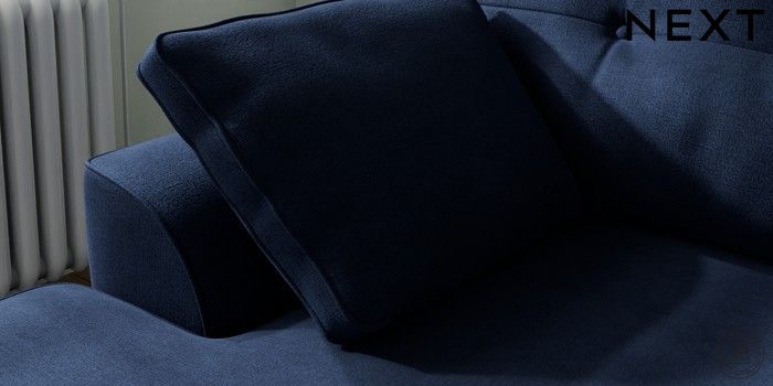 7.2.10 Stamford Buttoned Back Small Sofa Chaise - Left Hand Luxe Chenille Navy Blue Large Square Angle - Brushed Brass | Made Click here to use our website with more accessibility support, for example screen readers