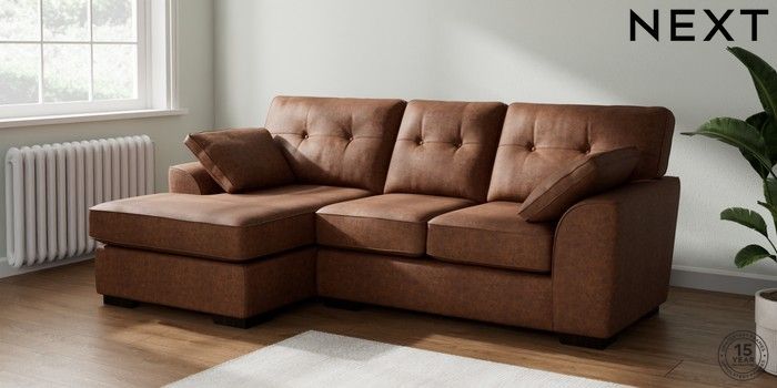 7.2.10 Stamford Buttoned Back Small Sofa Chaise - Left Hand Monza Faux Leather Easy Clean Chestnut Brown Large Square Angle - Dark | Made Click here to use our website with more accessibility support, for example screen readers