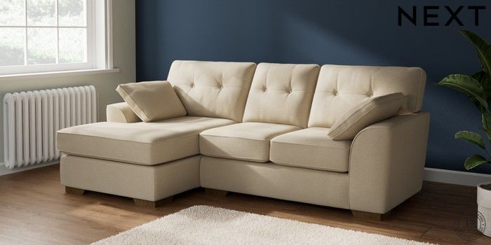 7.2.10 Stamford Buttoned Back Small Sofa Chaise - Left Hand Natural Mix Light Natural Large Square Angle - Mid | Made Click here to use our website with more accessibility support, for example screen readers