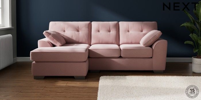 7.2.10 Stamford Buttoned Back Small Sofa Chaise - Left Hand Natural Mix Light Rose Pink Large Square Angle - Gunmetal | Made Click here to use our website with more accessibility support, for example screen readers